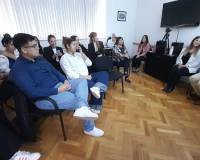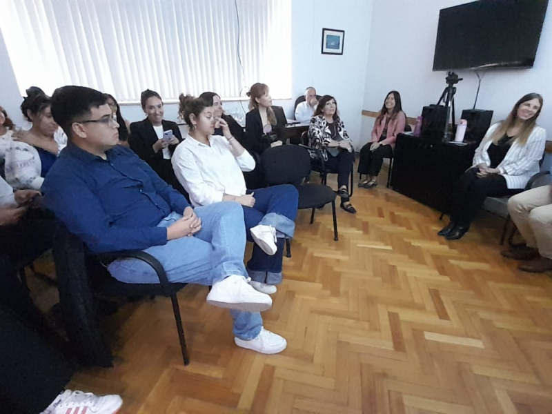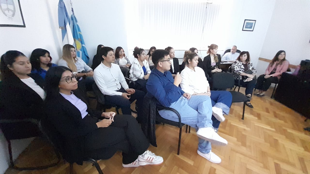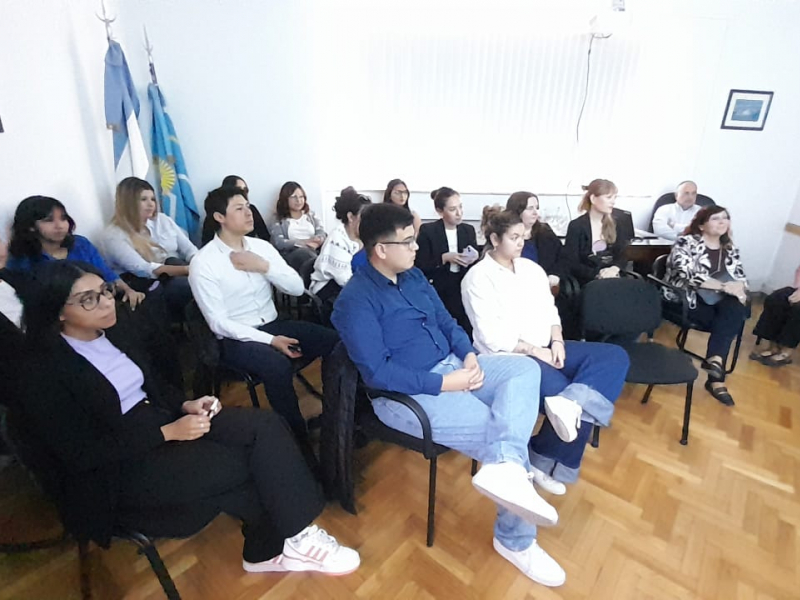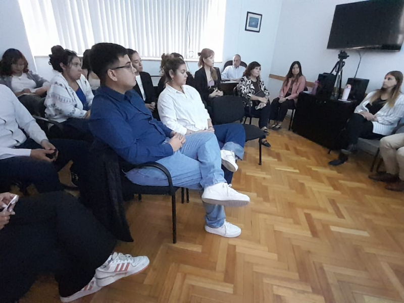 Los estudiantes fueron recibidos por el fiscal Jefe: Dr. Cristian Olazabal, la responsable del SAC: Dra. Carla Pérez Munuera; el Lic. Fernando Palindra y la Dra. María Laura González.