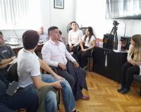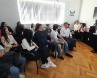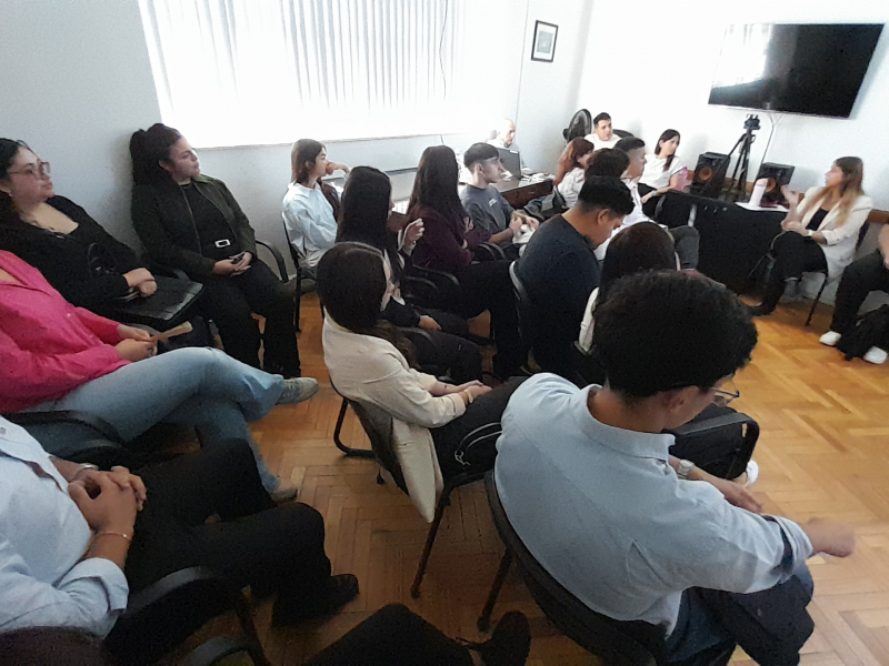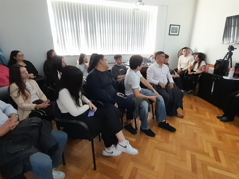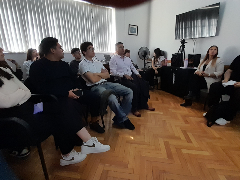 Los estudiantes fueron recibidos por el fiscal Jefe: Dr. Cristian Olazabal, la responsable del SAC: Dra. Carla Pérez Munuera; el Lic. Fernando Palindra y la Dra. María Laura González.