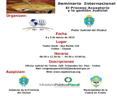 Durante los días 4 y 5 de marzo del corriente año, en el Teatro Verdi de la ciudad de Trelew, se desarrollará el Seminario Internacional: “EL PROCESO ACUSATORIO Y LA GESTION JUDICIAL”, organizado por el Superior Tribunal de Justicia del Chubut y el Centro de Estudios de Justicia de las Américas (CEJA), cuyos objetivos son presentar la visión de las distintas instituciones del sistema de justicia penal sobre la organización necesaria para la implementación de un proceso...